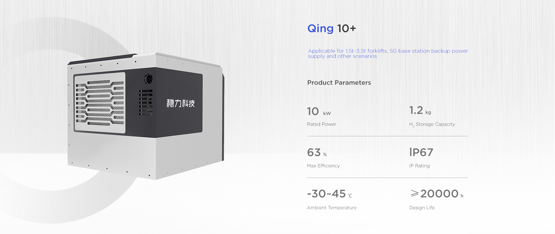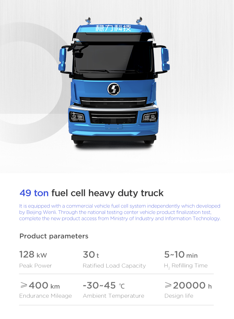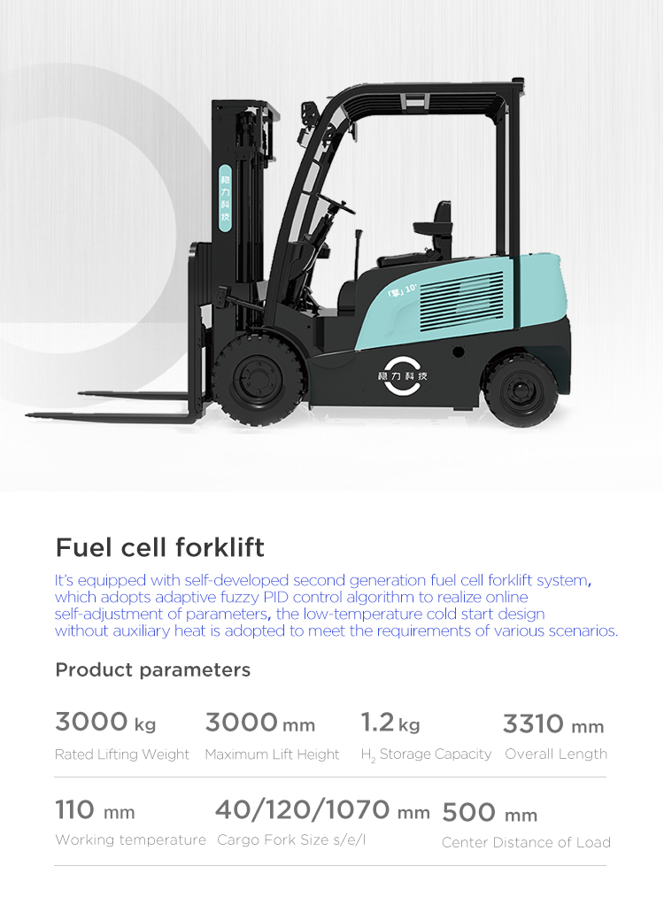 The forklift fuel cell system independently developed by Beijing Wltech can be customized. It adopts modular design with low maintenance cost, strong environmental adaptability, low noise, high reliability, high stability and other characteristics. Refilling hydrogen in 3 minutes, working for 4-6 hours, zero pollution and zero emission, and meets the requirements of “carbon peaking and carbon neutrality".