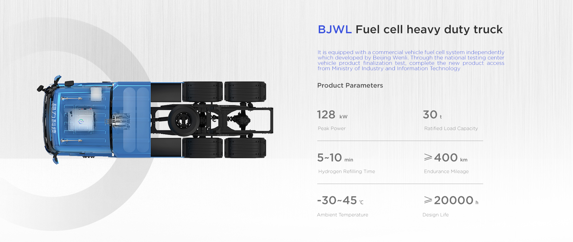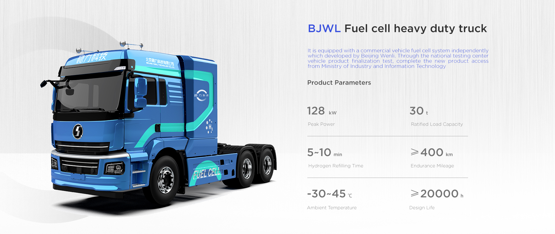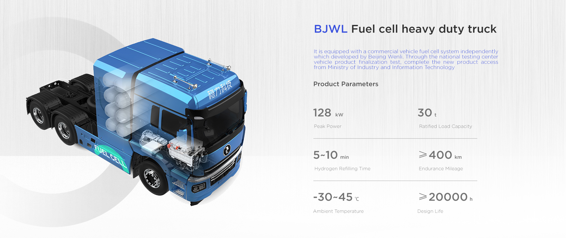 The forklift fuel cell system independently developed by Beijing Wltech can be customized. It adopts modular design with low maintenance cost, strong environmental adaptability, low noise, high reliability, high stability and other characteristics. Refilling hydrogen in 3 minutes, working for 4-6 hours, zero pollution and zero emission, and meets the requirements of “carbon peaking and carbon neutrality".