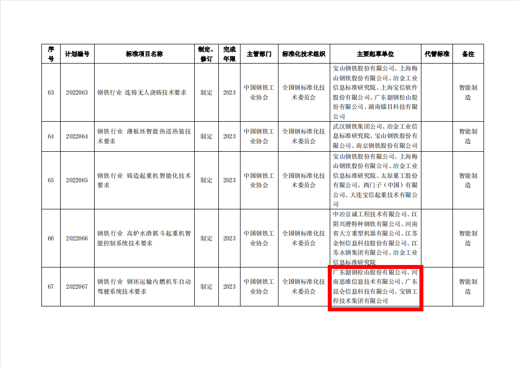 2022年3月29日,中國(guó)鋼鐵工業(yè)協(xié)會(huì)下達(dá)2022年第一批團(tuán)體標(biāo)準(zhǔn)制修訂計(jì)劃。本批計(jì)劃共計(jì)71項(xiàng),涉及科技成果轉(zhuǎn)化、智能制造等領(lǐng)域。公司控股子公司河南思維信息技術(shù)有限公司參與編制的“鋼坯運(yùn)輸內(nèi)燃機(jī)車自動(dòng)駕駛系統(tǒng)技術(shù)要求”成功入選,標(biāo)志著內(nèi)燃機(jī)車自動(dòng)駕駛系統(tǒng)在國(guó)內(nèi)鋼鐵企業(yè)應(yīng)用將有據(jù)可依,向標(biāo)準(zhǔn)化、規(guī)范化發(fā)展邁進(jìn)一大步。思維列控為中國(guó)工業(yè)改革進(jìn)程添磚加瓦,奮勇前行。 鋼坯線鐵路運(yùn)輸智能化系統(tǒng)由機(jī)車自動(dòng)駕駛單元、異物侵限自動(dòng)報(bào)警單元、遠(yuǎn)程控制中心單元、無(wú)線通信單元等組成,實(shí)現(xiàn)了運(yùn)輸自動(dòng)駕駛、調(diào)車安全防護(hù)、異物侵限報(bào)警、視頻全線追蹤、自動(dòng)摘掛鉤、指定點(diǎn)停車后自動(dòng)防溜等功能,實(shí)現(xiàn)了鋼坯從新一鋼至特棒廠全線的自動(dòng)化運(yùn)輸作業(yè)。