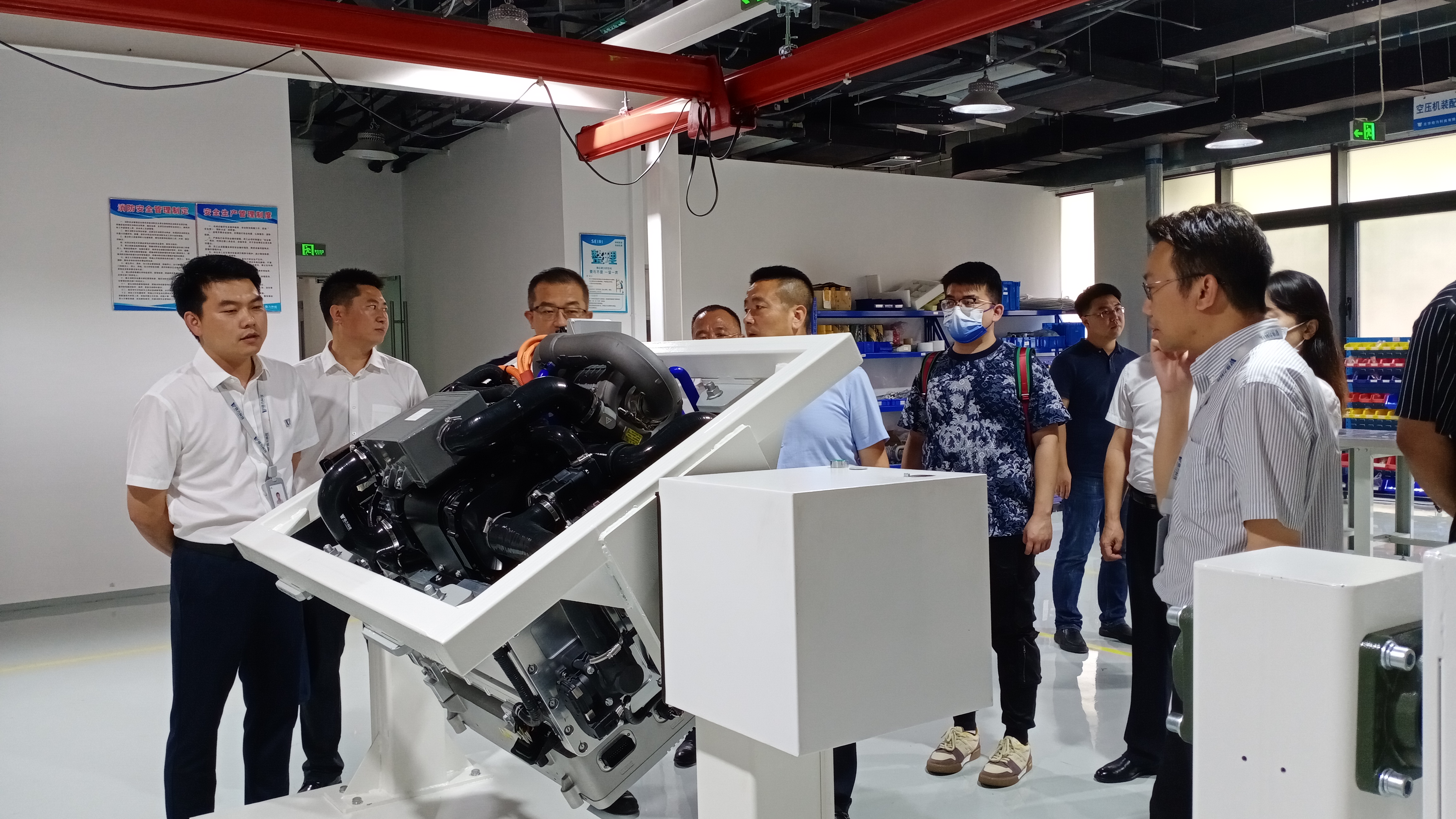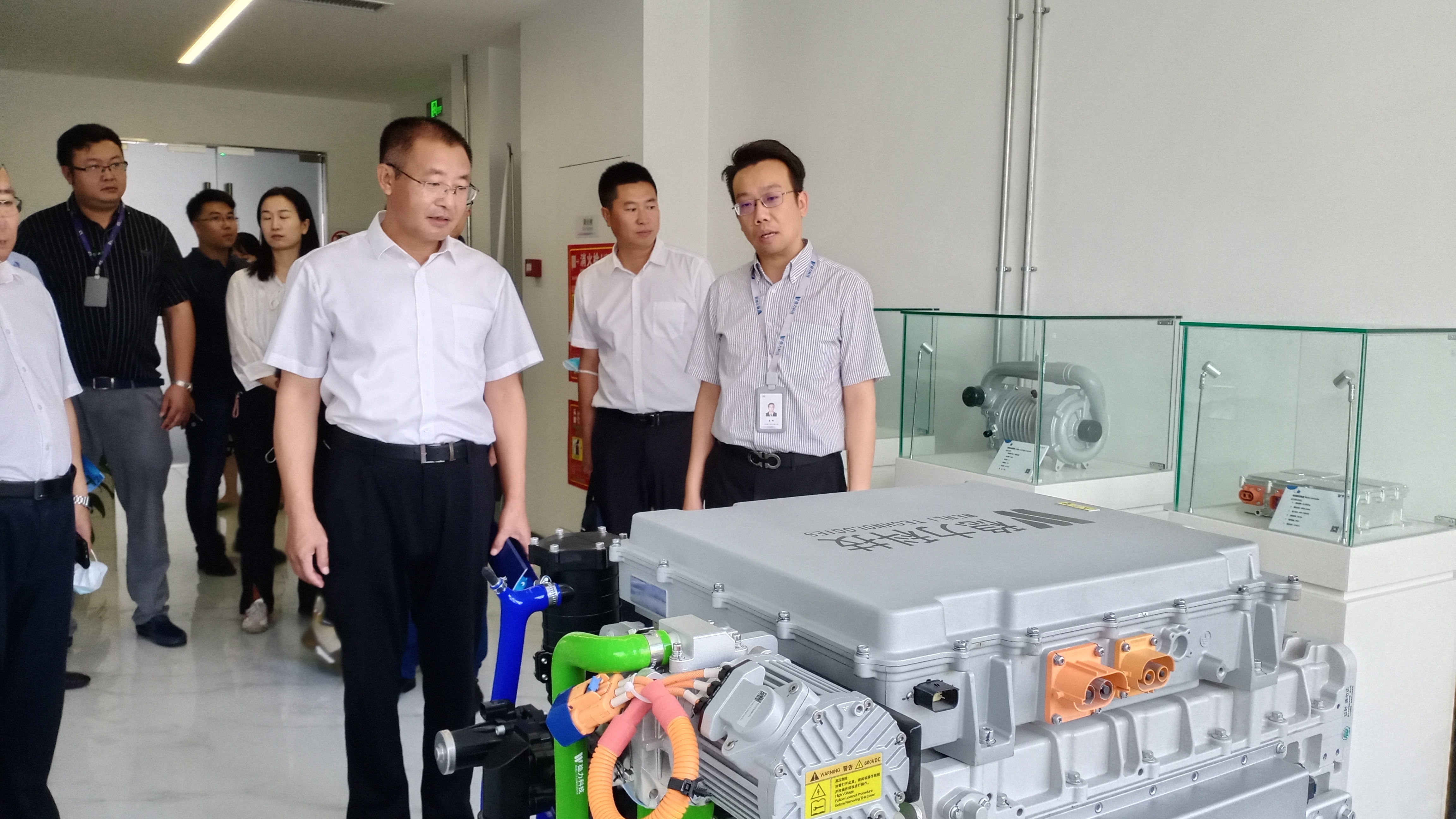 招商考察期間,于久彥書記一行首先參觀了氫能交流中心,在展覽區跟隨講解員詳細參觀了解——氫能制、儲、運、加、用、燃料電池八大核心及其他零部件等國內外先進的技術成果。在核心展區,吳偉向考察團一行介紹了正在展出的北京穩力自主研發的燃料電池叉車「擎」10+。于久彥書記對該叉車的“零污染、零排放”、“加氫3分鐘、工作6小時”等綠色清潔動力優勢給予了認可。