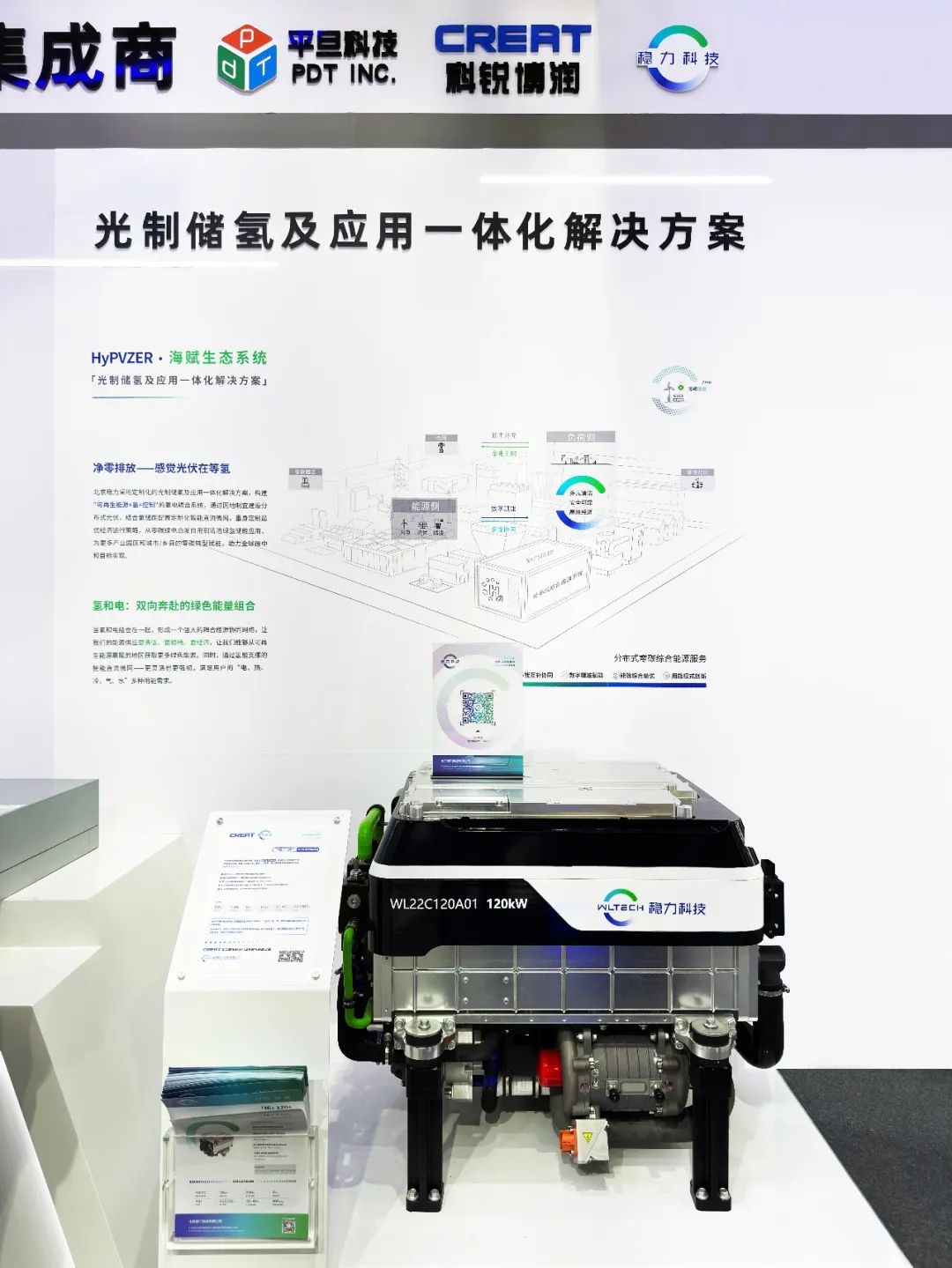 在ESIE2023展會現場,通過觸屏式數字沙盤的可視化三維演示,現場觀眾詳細了解北京穩力推出的光制儲氫及應用一體化解決方案。據悉,該解決方案通過構建"可再生能源+氫+控制"的氫電耦合系統,探索綠色電力與綠氫儲能相結合的能源應用新模式,采用氫儲能的方式解決新能源發電波動問題,自主研發的“分布式綜合能源系統”,單模塊額定功率500kW,支持定制、多模塊擴展、多能源耦合,氫電轉換效率高,熱電聯產效率>90%,儲存的氫氣可用于氫能車輛加氫,也可通過燃料電池系統實現冷熱電三聯供,滿足用戶的“電、熱、冷、氣、水”多種用能需求。